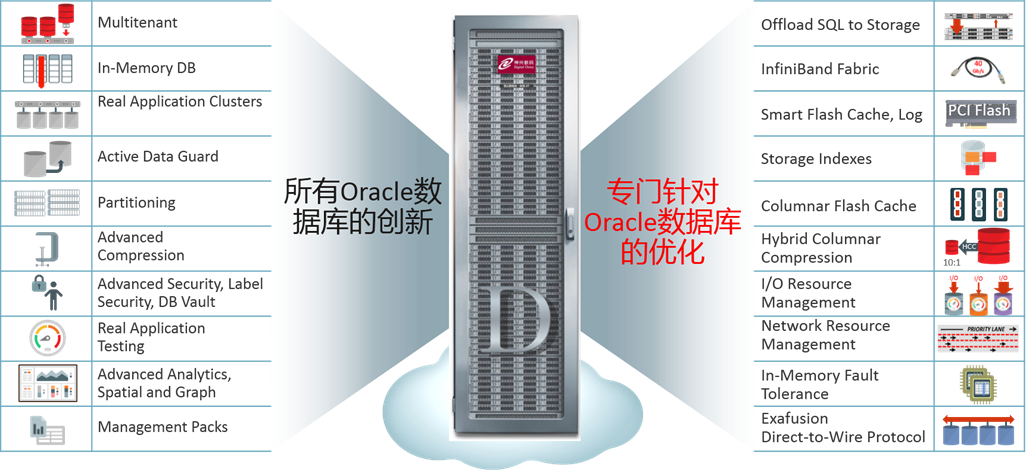 金荣中国数码登云数据库一体机顺利获得集成设计为Oracle数据库带来了卓越的性能、极佳的成本效益和极高的可用性。登云数据库一体机采用支持云的现代化架构,内含可横向扩展的高性能数据库服务器、可横向扩展的智能存储服务器(配有先进的PCIe闪存)、使用持久性内存的先进存储缓存以及连接所有服务器和存储的云级RDMA over Converged Ethernet (RoCE) 内部结构。登云数据库一体机采用独有的算法和协议,在存储、计算和网络中实现了数据库智能,因此,与其他平台相比,能以更低的成本给予更高的性能和容量。它适用于所有类型的现代数据库负载,包括联机事务处理(OLTP)、数据仓库(DW)、内存分析、物联网(IoT)、财务、游戏、合规性数据管理以及高效整合的混合负载。登云数据库一体机部署简单、快速,能为您极其重要的数据库给予全面的支持和保护。